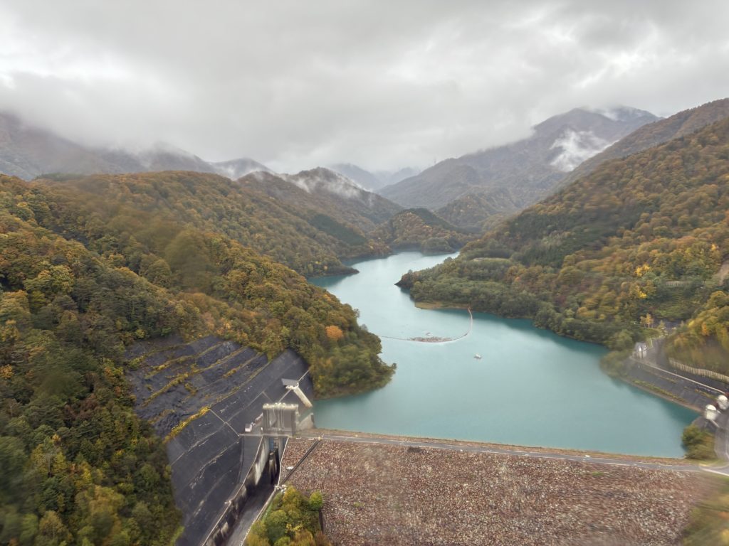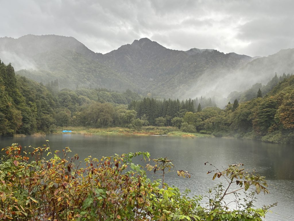 ランチ後は、いよいよ最後の名所「太源太湖」へ。日本初のアーチ式ダムで堰き止めて造られたダム湖で、奥に見える太源太山は日本のマッターホルンと呼ばれているそう・・・。残念ながら、雨のため周囲の散策はできませんでした。