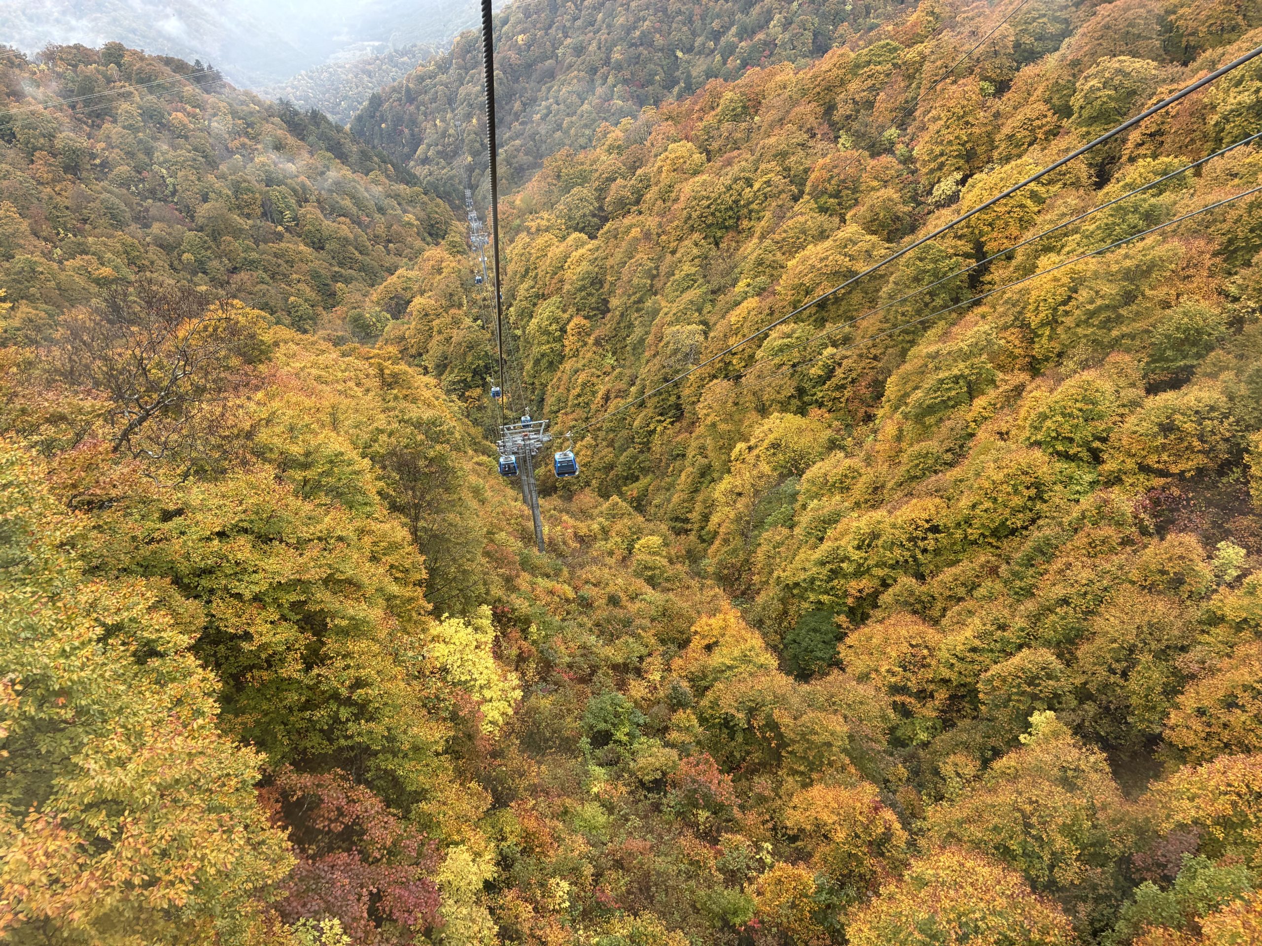 10/26 最終日です。この日は、あいにく朝から雨模様。朝食を取ってから、バスで田代ロープウェイへ。一番乗りで、貸し切り状態! 霧が心配されましたが、何とか景色も堪能出来ました。