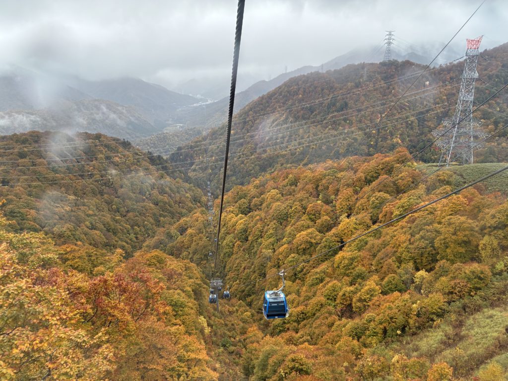 少し休憩して小雨の中、いよいよ「ドラゴンドラ」乗車!雨で空いていたせいか、最大8人乗りのところを2人で乗車。全長 約5.5km 乗車時間 約25分 と日本最長のゴンドラです。